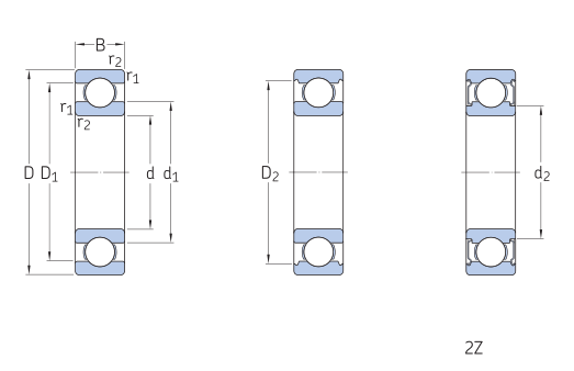 单列深沟球轴承类型代号为6,双列深沟球轴承代号为4。其结构简单,使用方便,是生产普遍,应用广泛的一类轴承。深沟球轴承主要承受径向载荷,也可同时承受径向载荷和轴向载荷。当其仅承受径向载荷时,接触角为零。当深沟球轴承具有较大的径向游隙时,具有角接触轴承的性能,可承受较大的轴向载荷 ,深沟球轴承的摩擦系数很小,极限转速也很高。